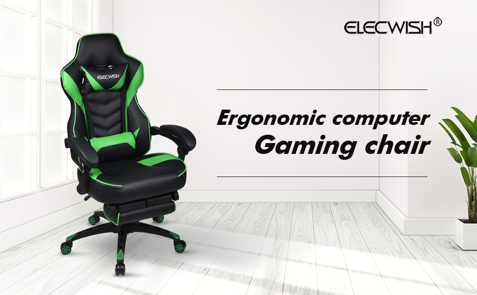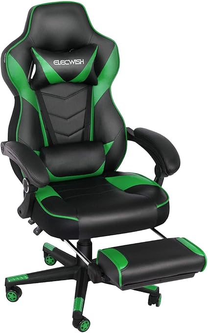 Amazon Com Elecwish Racing Video Gaming Chair High Back Large Size Ergonomic Adjustable Swivel Reclining Executive Computer Chair With Headrest And Lumbar Support Pu Leather Executive Office Chair Green Furniture Decor