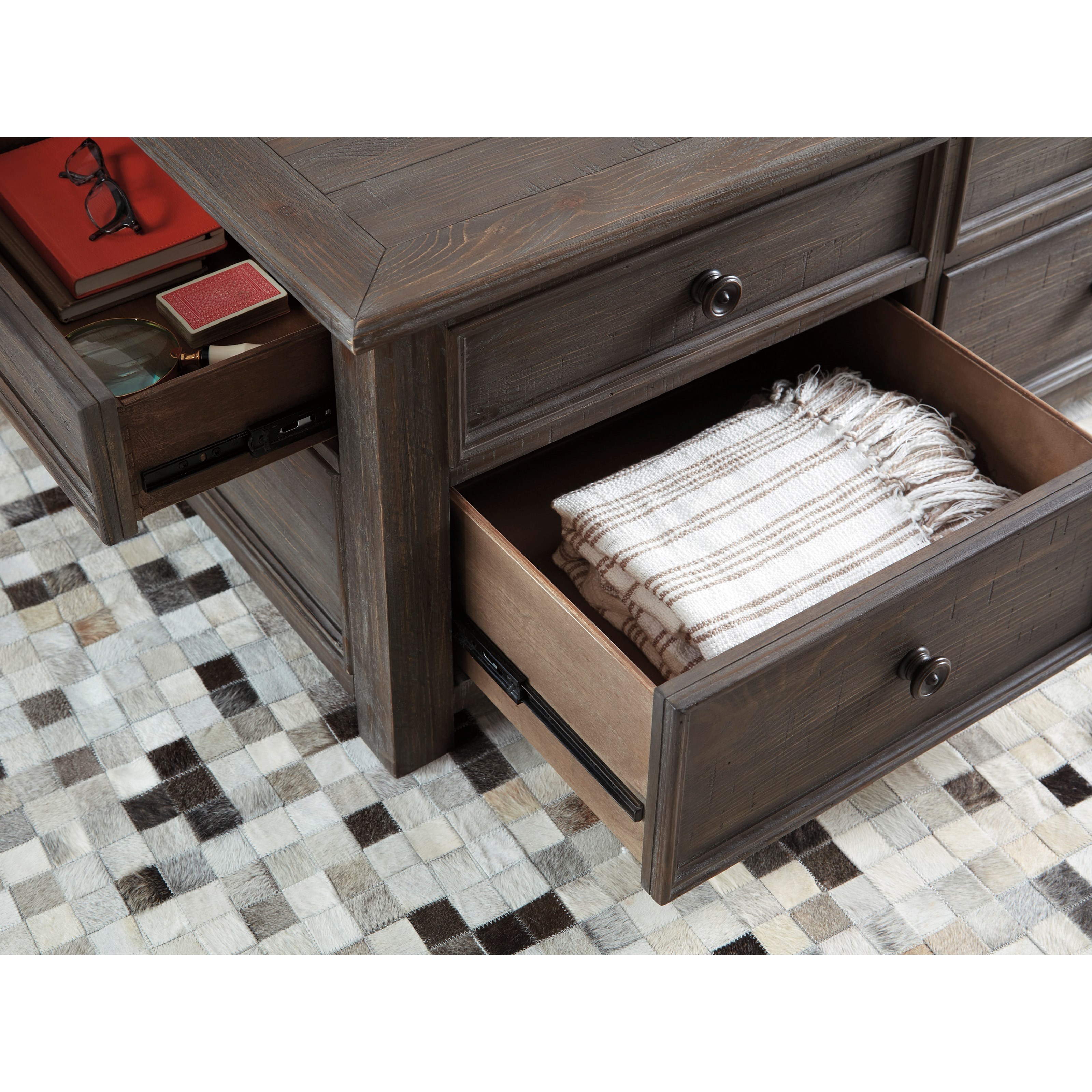 End Side Tables. The Wyndahl Lift-Top Cocktail Table with 4 Drawers made by Ashley Signature Design is brought to you by Dunk Bright Furniture. Bed bases special order fabric yardage and services such as delivery and fabric protectionRead More.