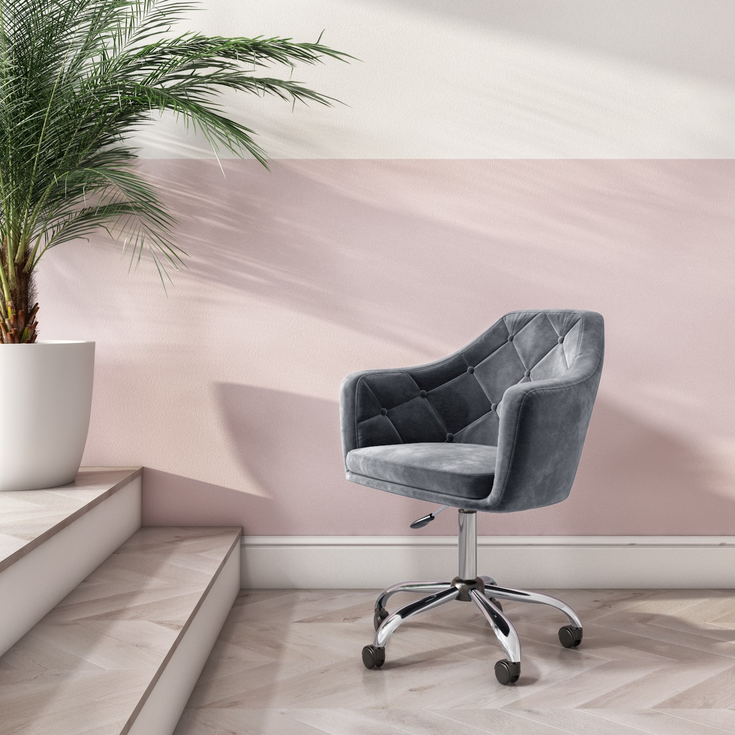 Grey Velvet Office Swivel Chair With Button Back Marley Furniture123