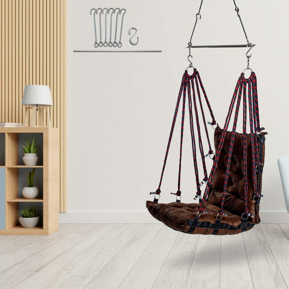 Swingzy Make In India Soft Leather Velvet Hanging Swing Chair Jhula For Adults Swing For Indoor Outdoor Home Balcony Garden 200 Kgs Weight Capacity Brown Free Hanging Accessories Amazon In Home Kitchen