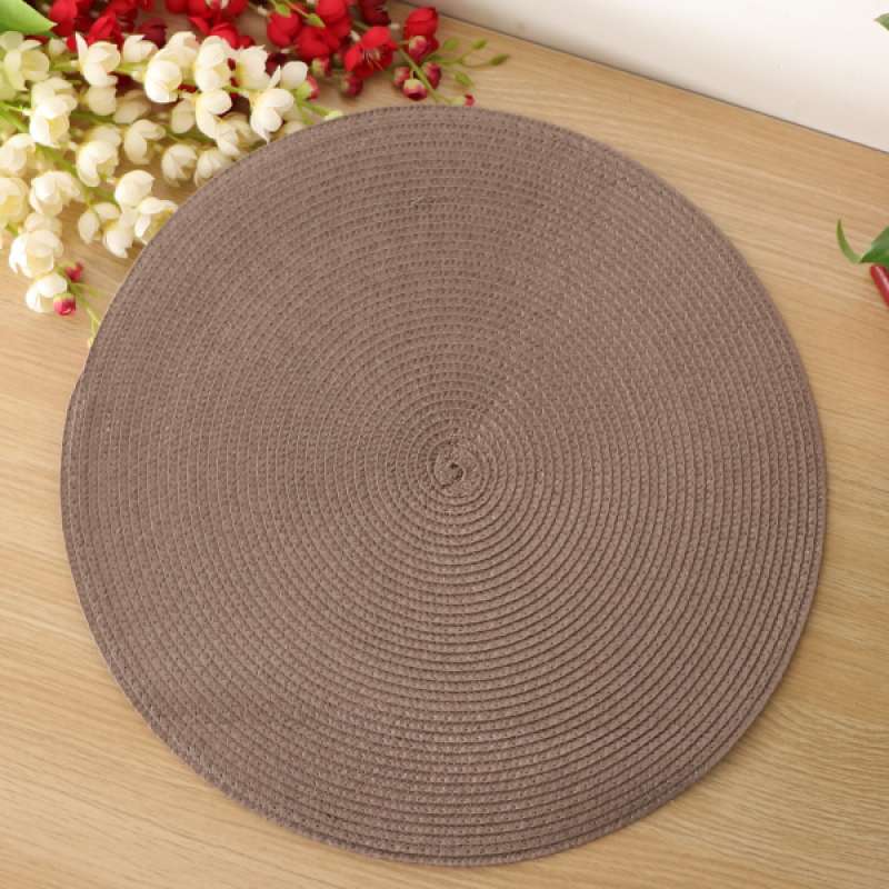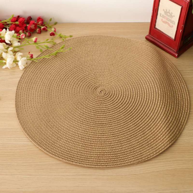Brown PVC Jacquard Table Place Mats - Set of 6. Hand Wash Spot Clean. Table Top Reversible Round Placemats Natural Brown Organic Jute 15 inch Hand Woven Braided Indoor Set of Two This jute placemat is a perfect fit for a dining room table or coffee table.